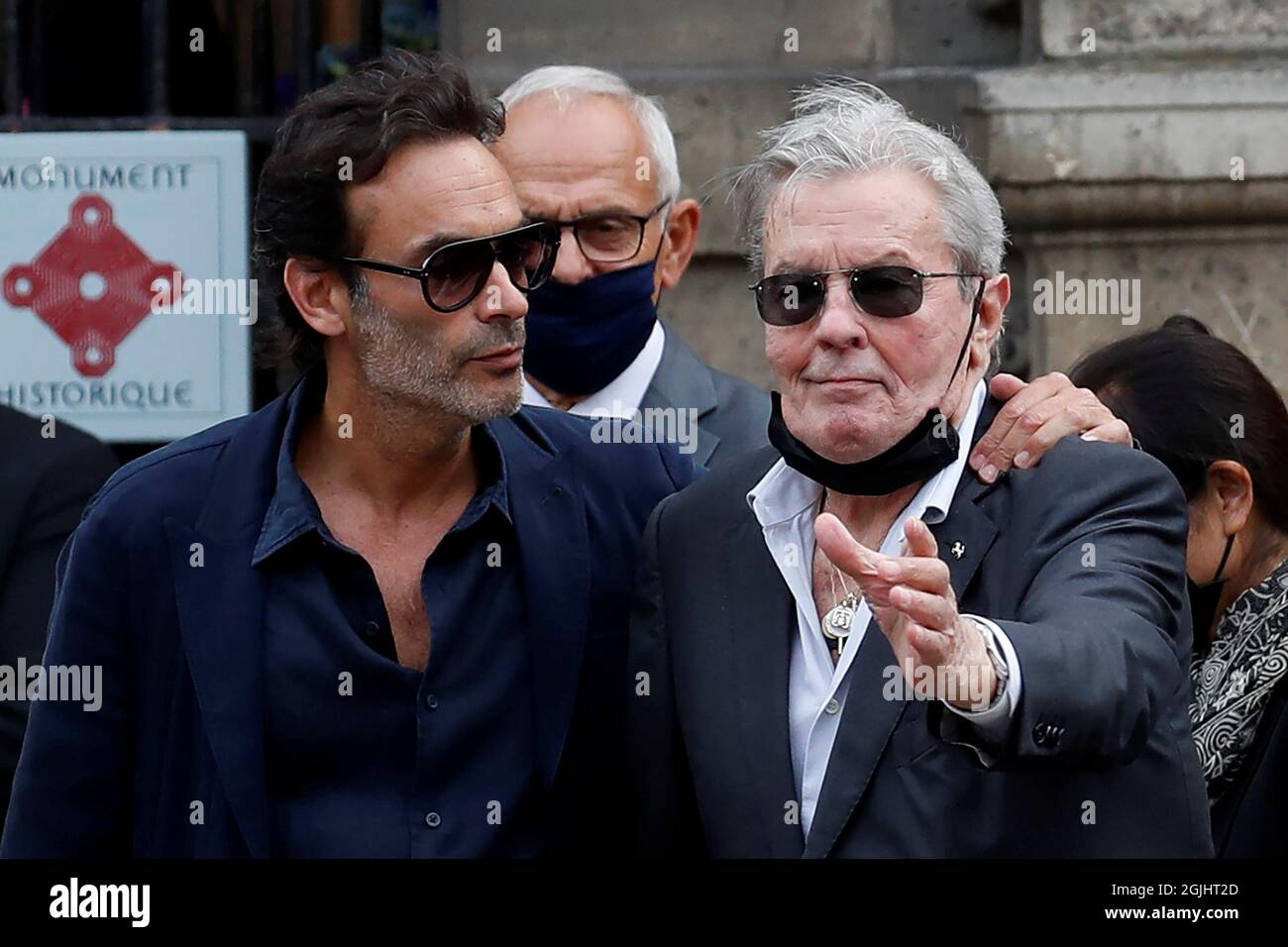 Alain Delon Und Sein Sohn Anthony Delon Kommen Zur Trauerfeier Fur Den Verstorbenen Franzosischen Schauspieler Jean Paul Belmondo Am 10 September 2021 In Der Kirche Saint Germain Des Pres In Paris Frankreich Reuters Gonzalo Fuentes Stockfotografie